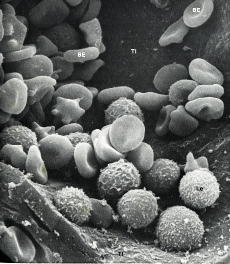 There are two types of blood cells, the red blood cell and the white blood cell. The red blood cell is the most common however. The job of the blood cells is to give oxygen to body tissue through blood.